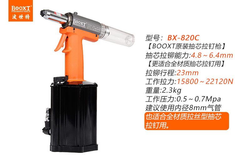 東莞市強勁五金工具有限公司提供臺灣BOOXT波世特品牌氣動工具,氣動拉絲鉚釘槍BX-820C廠家直銷,首件享特價。咨詢熱線:4008301980
