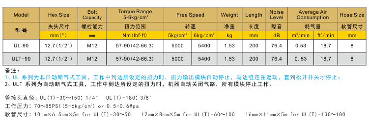 力矩氣動扳手UL-90/ULT-90