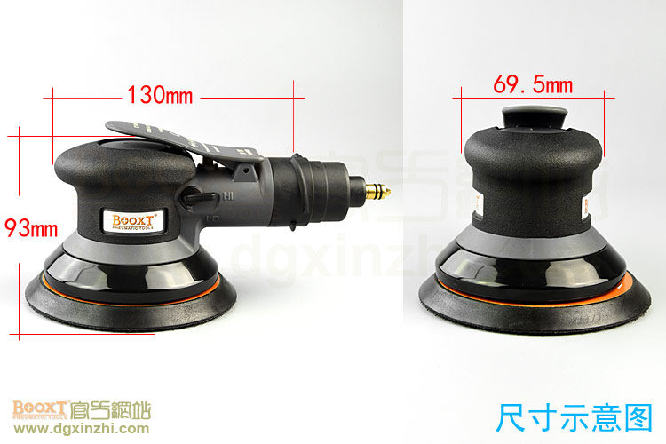 • 產品參數: 底盤尺寸:5寸(125mm);轉速:11000rpm;偏擺:5mm;重量:0.84kg;使用氣壓:0.65Mpa;推薦氣管:內徑8mm;耗氣量:0.53立方米/分鐘;需搭配集塵桶使用,機器使用時多加氣動油保養。
