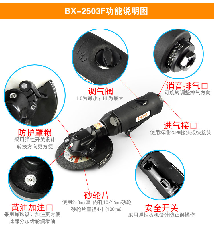 超薄氣動角向磨光機BX-2503F