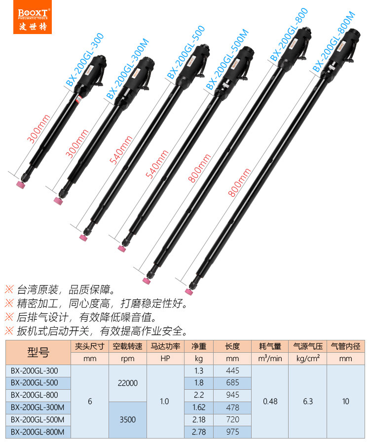 東莞市強勁五金工具有限公司提供臺灣BOOXT波世特品牌氣動工具,加長內磨機BX-200GL-500廠家直銷,首件享特價。咨詢熱線:4008301980