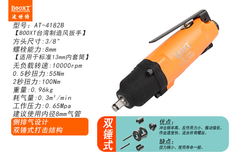 東莞市強勁五金工具有限公司提供臺灣BOOXT波世特品牌氣動工具,直柄迷你氣動扳手AT-4182B廠家直銷,首件享特價。咨詢熱線:4008301980