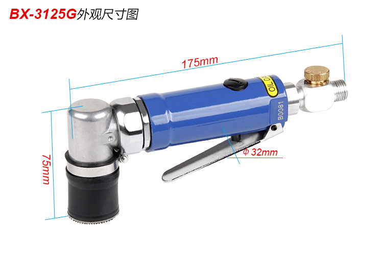 • 產(chǎn)品參數(shù): 底盤尺寸:30mm (1寸) 偏擺直徑:3mm 空載轉(zhuǎn)速:8500rpm/min 頭部高度:65mm 機(jī)身長度:175mm 重 量:0.56kg 耗 氣 量:0.14m3/min 噪 音 值:75db(A)【工業(yè)型】