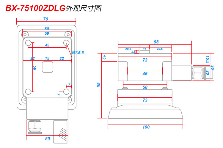 底盤尺寸:75*100mm