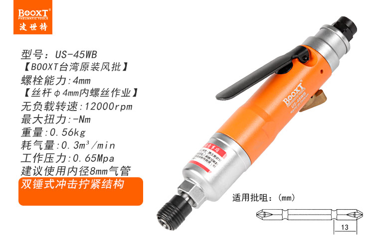 東莞市強勁五金工具有限公司提供臺灣BOOXT波世特品牌氣動工具,迷你氣動螺絲刀US-45WB廠家直銷,首件享特價。咨詢熱線:4008301980