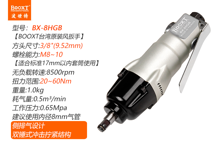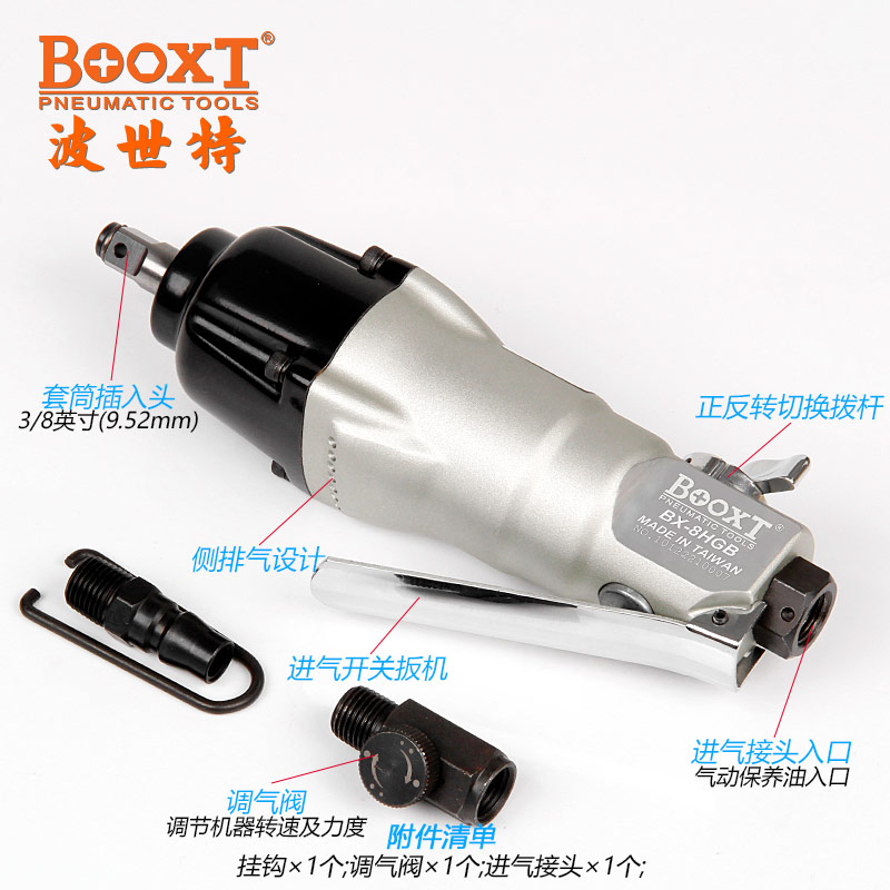 東莞市強勁五金工具有限公司提供臺灣BOOXT波世特品牌氣動工具,直柄氣動扳手BX-8HGB廠家直銷,首件享特價。咨詢熱線:4008301980