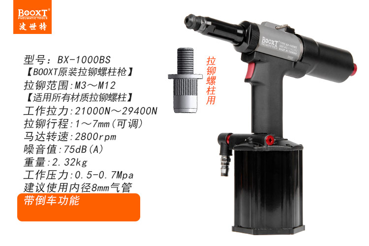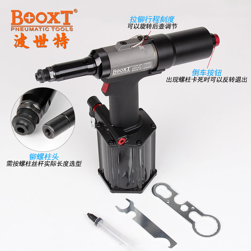 東莞市強勁五金工具有限公司提供BOOXT波世特品牌氣動工具,氣動鉚螺柱槍BX-1000BS廠家直銷,首件享特價。咨詢熱線:4008301980