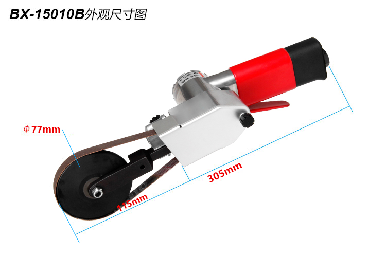 • 產品參數: 砂帶尺寸:6/10*418mm 轉 速:16000rpm; 長 度:305mm; 重 量:0.96kg; 耗 氣 量:0.45m3/min 使用工作氣壓:0.65Mpa; 推薦使用內徑8mm氣管; 平時使用應多加氣動油保養. 【工業型】