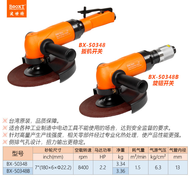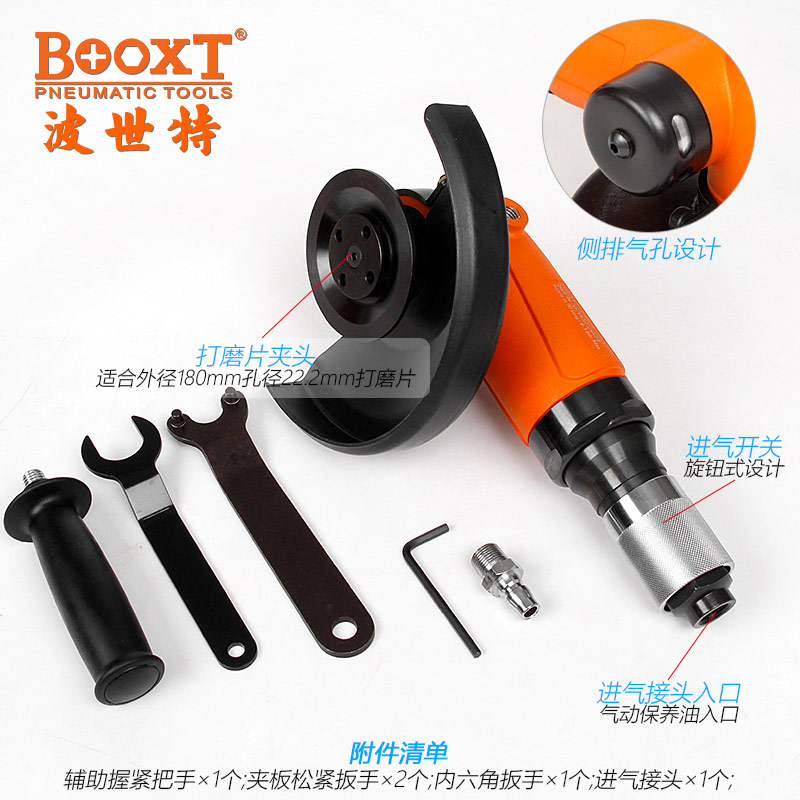 東莞市強勁五金工具有限公司提供臺灣BOOXT波世特品牌氣動工具,大功率氣動角磨機BX-50348B廠家直銷,首件享特價。咨詢熱線:4008301980