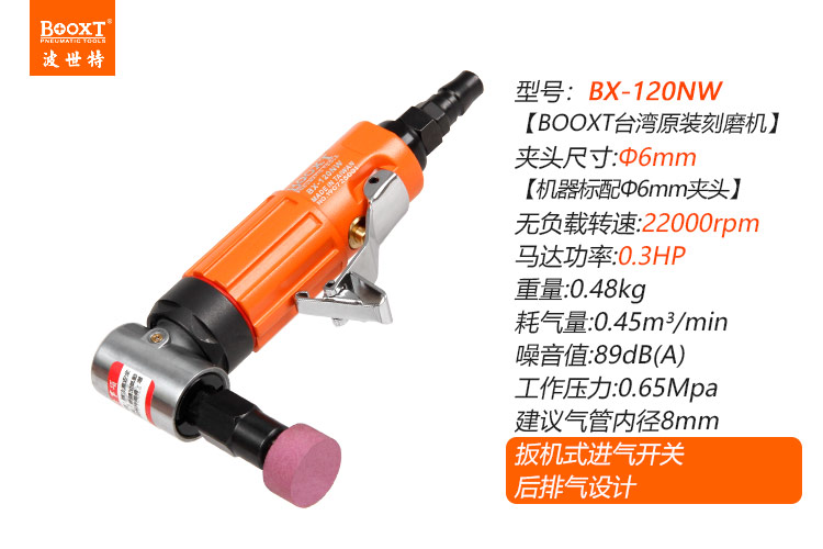 東莞市強勁五金工具有限公司提供臺灣BOOXT波世特品牌氣動工具,彎頭氣動打磨機BX-120NW廠家直銷,首件享特價。咨詢熱線:4008301980