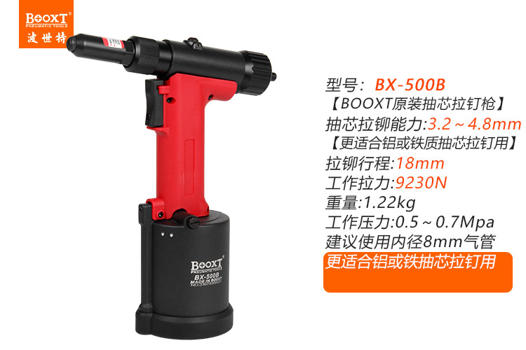 東莞市強(qiáng)勁五金工具有限公司提供臺(tái)灣BOOXT波世特品牌氣動(dòng)工具,氣動(dòng)拉釘槍BX-500B廠家直銷(xiāo),首件享特價(jià)。咨詢熱線:4008301980