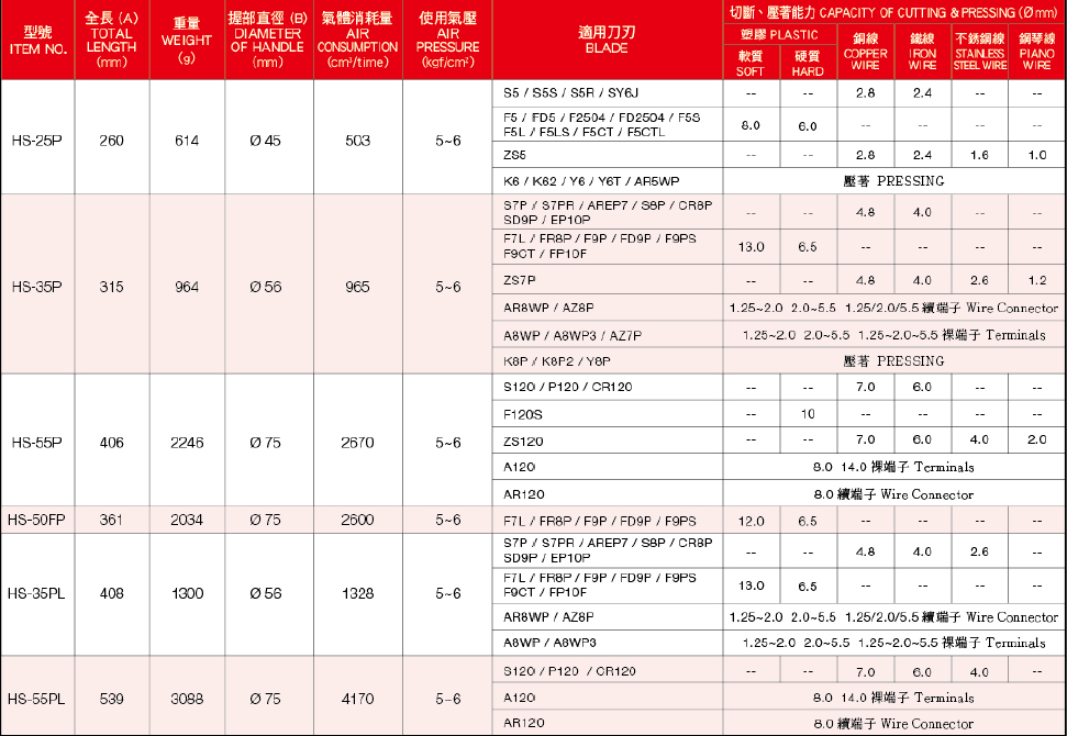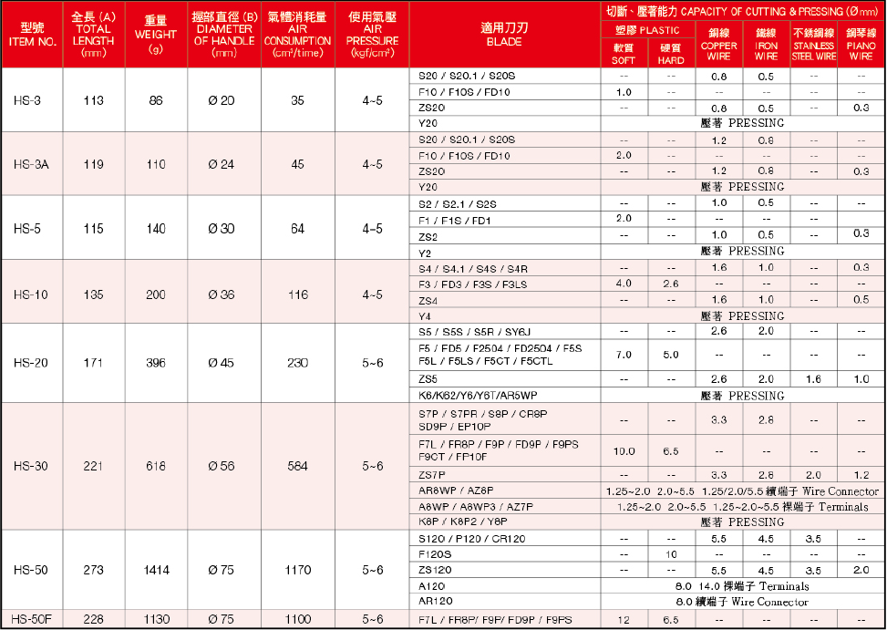 3.慎選本體及刀刃: 依客戶所要剪的工件,選配最適合的本體跟刀刃.以小剪大無法達成工作上的需求 (一般而言要以小剪大,就是加大空氣源 ,如此容易造成本體及刀刃損壞。) 以大剪小,刀刃使用壽命將嚴重減少。