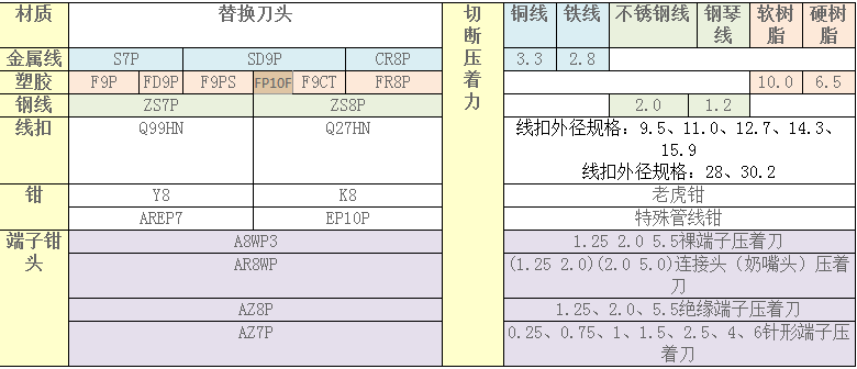 刀頭選擇請參考下表: